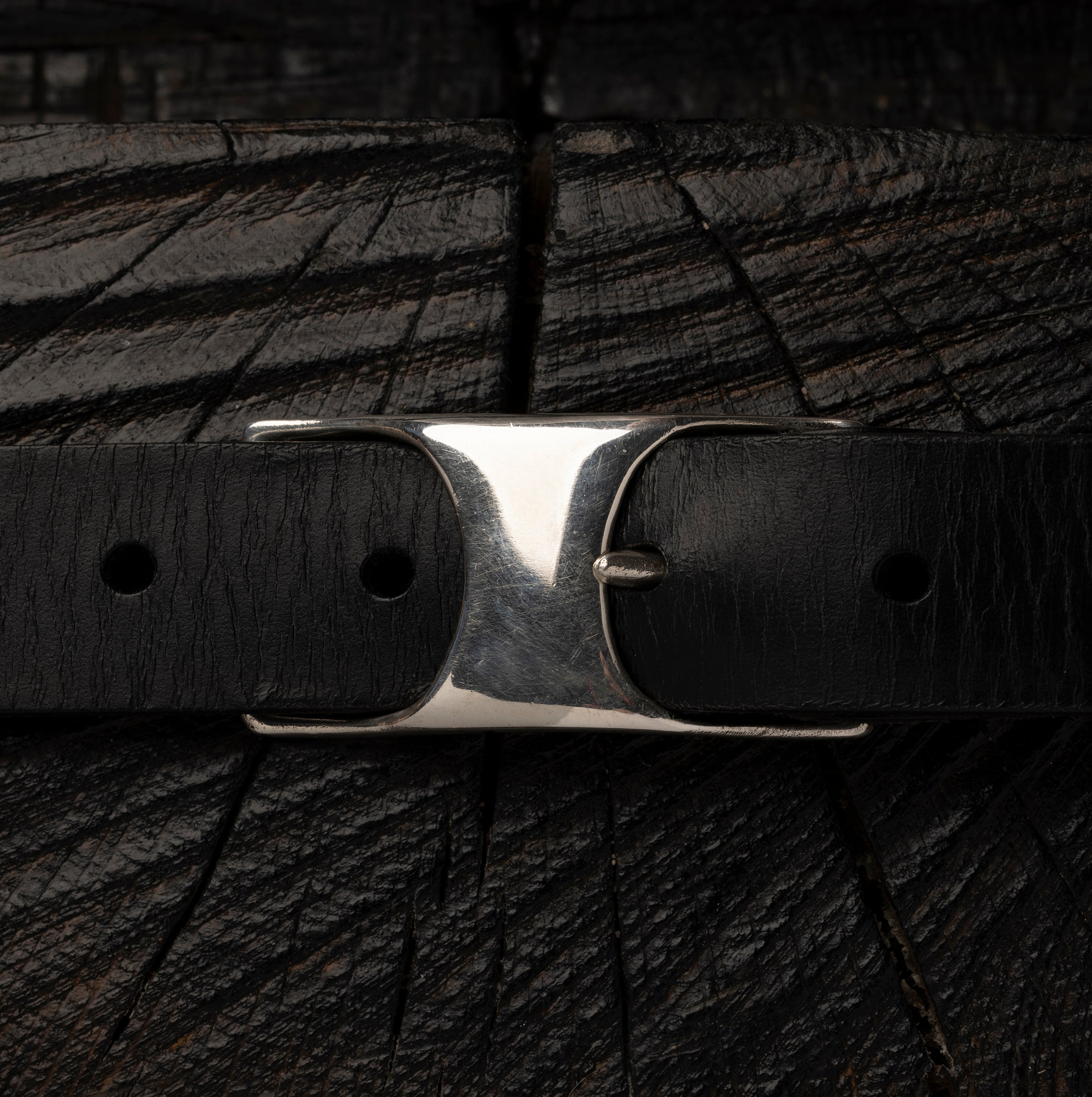 A minimalist perspective on a vintage equestrian piece of hardware with a reverse prong.