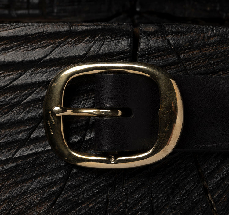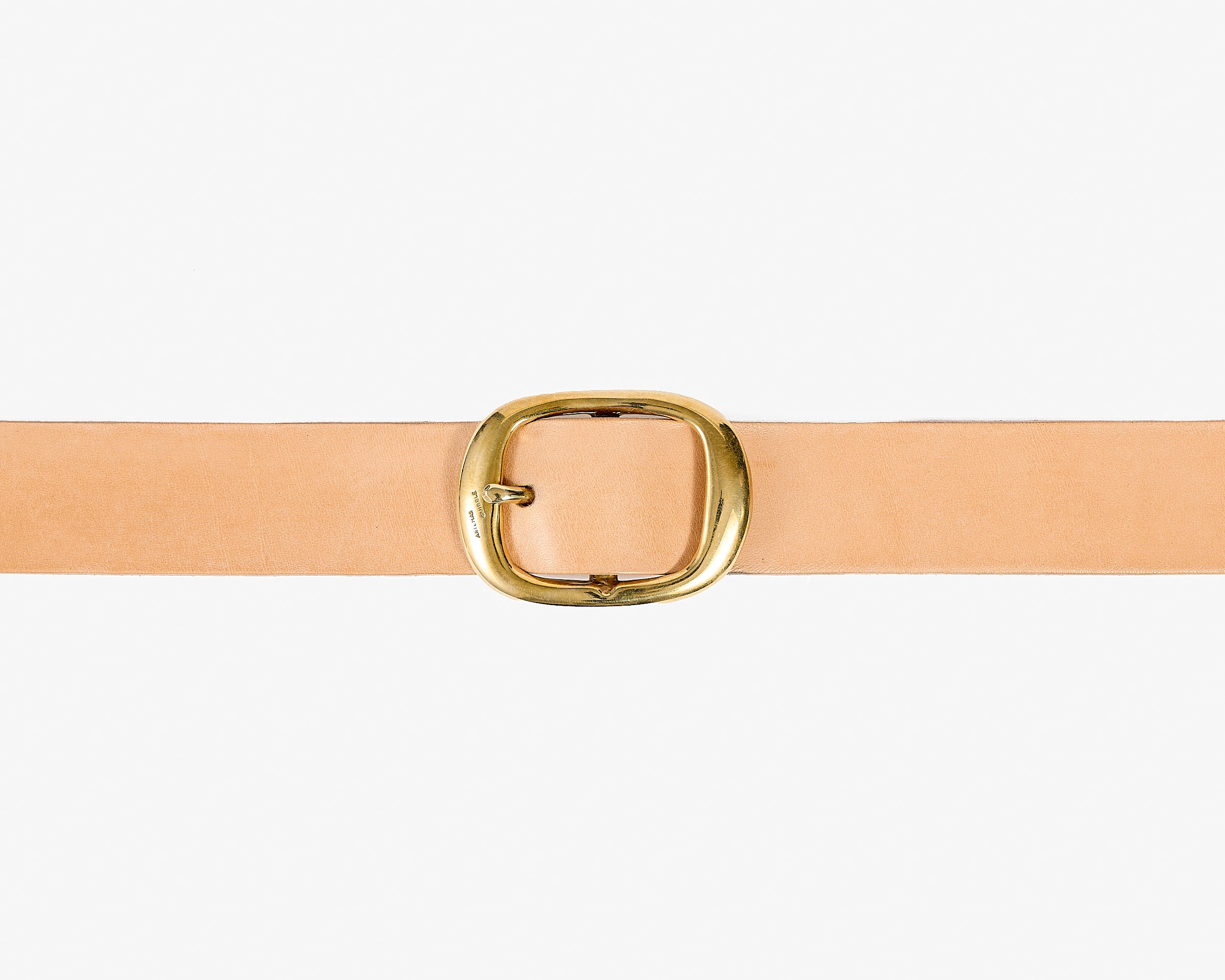 A classic oval center bar buckle, rooted in the equestrian hardware tradition.