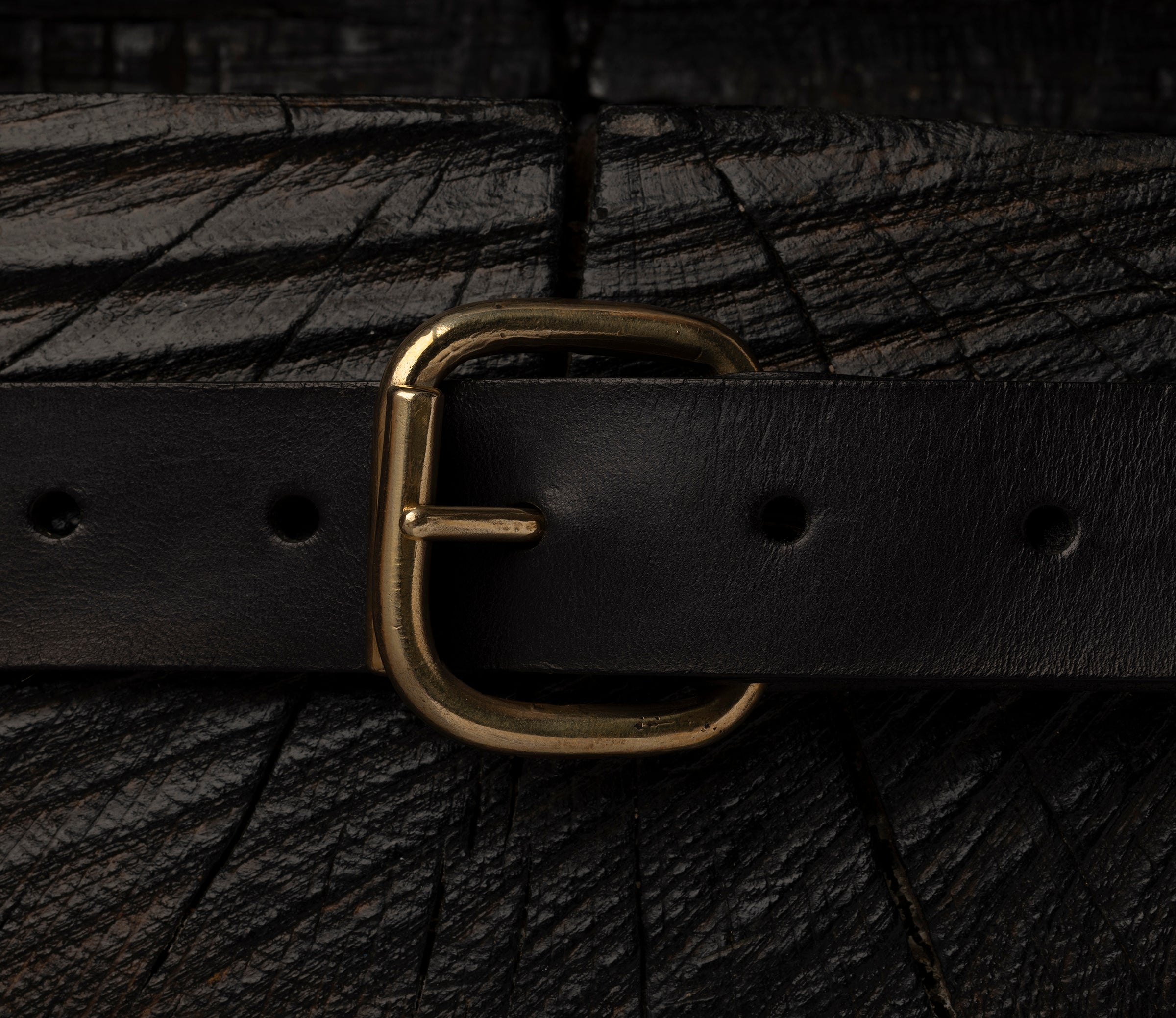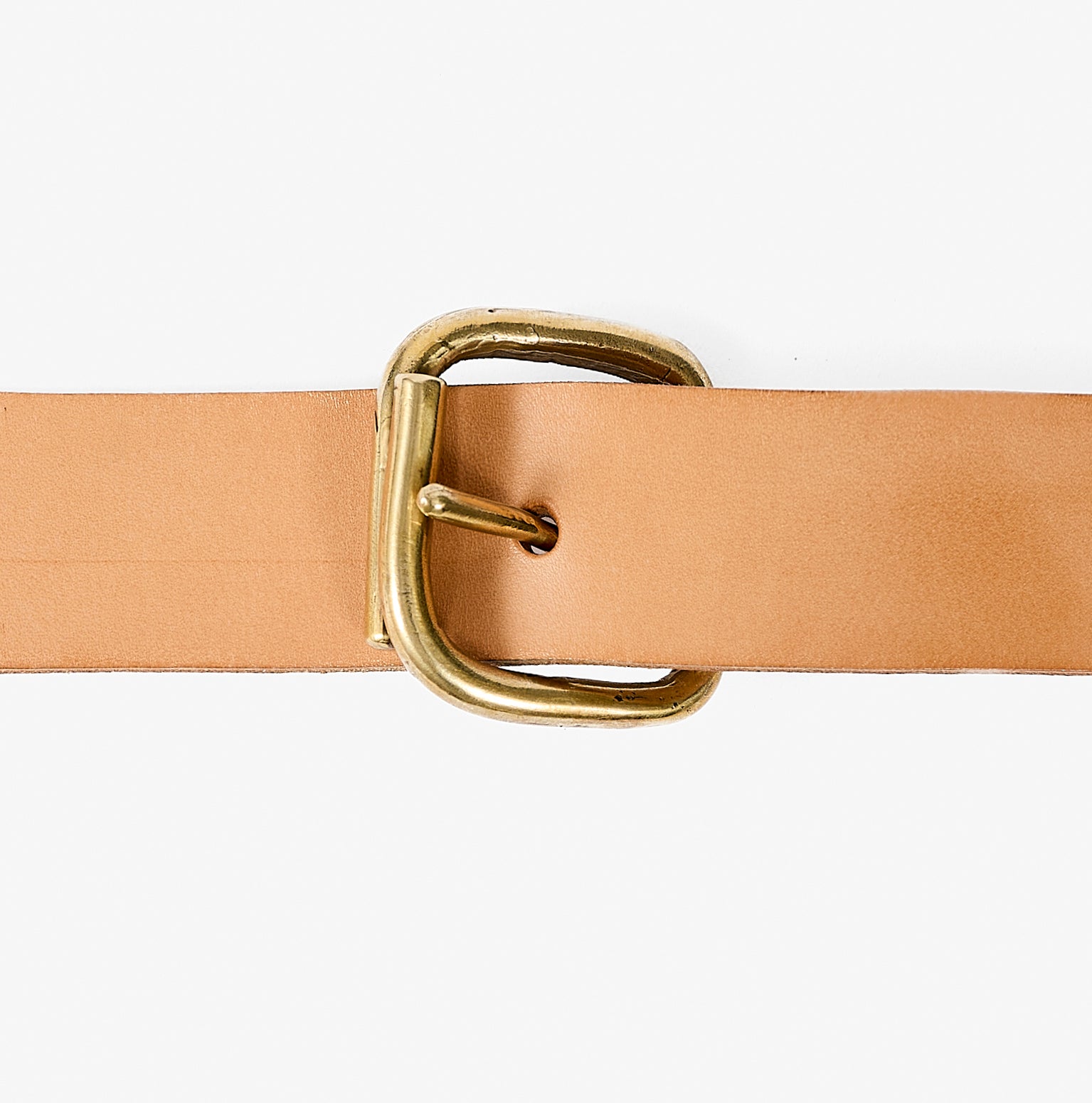 The Mercer belt is 1.5” wide and features a folded brass wire buckle.